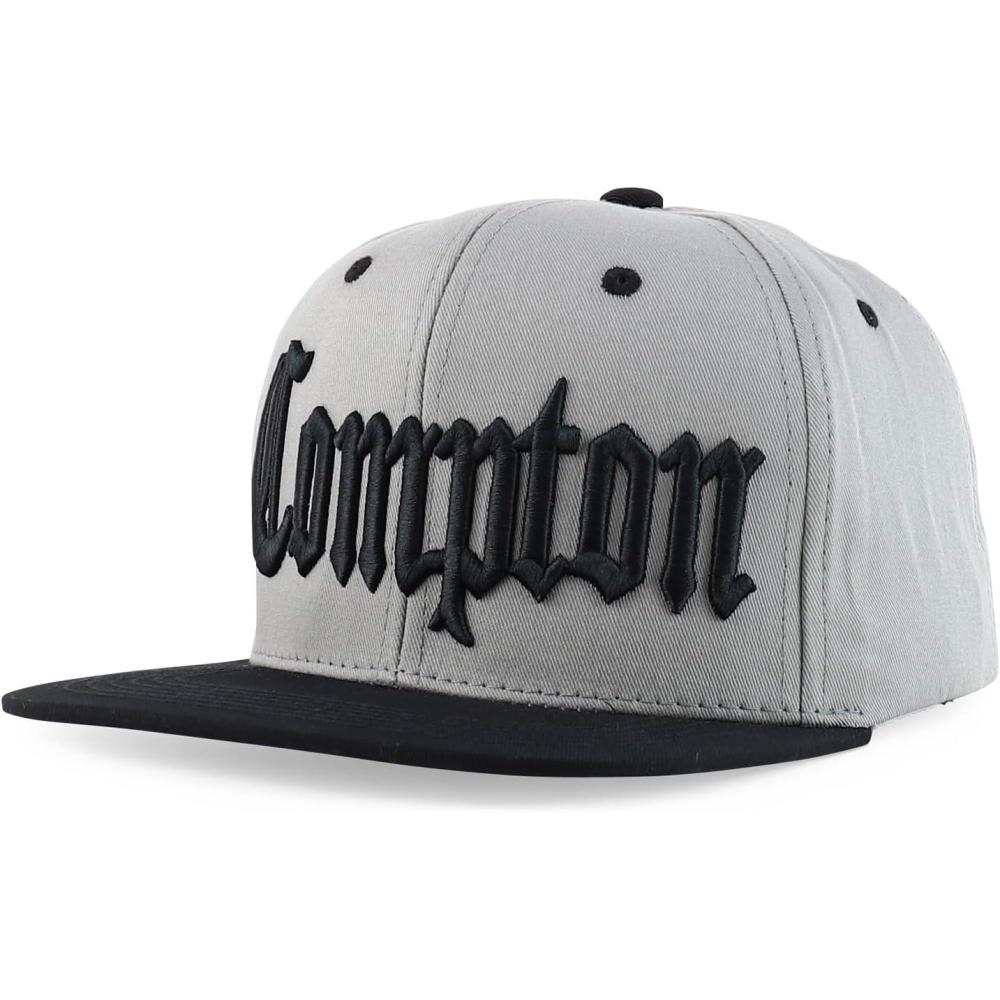 Be the first to review “Trendy Apparel Shop 3D Compton Old English Font Embroidered Flat Bill Snapback Cap(Grey Black)”