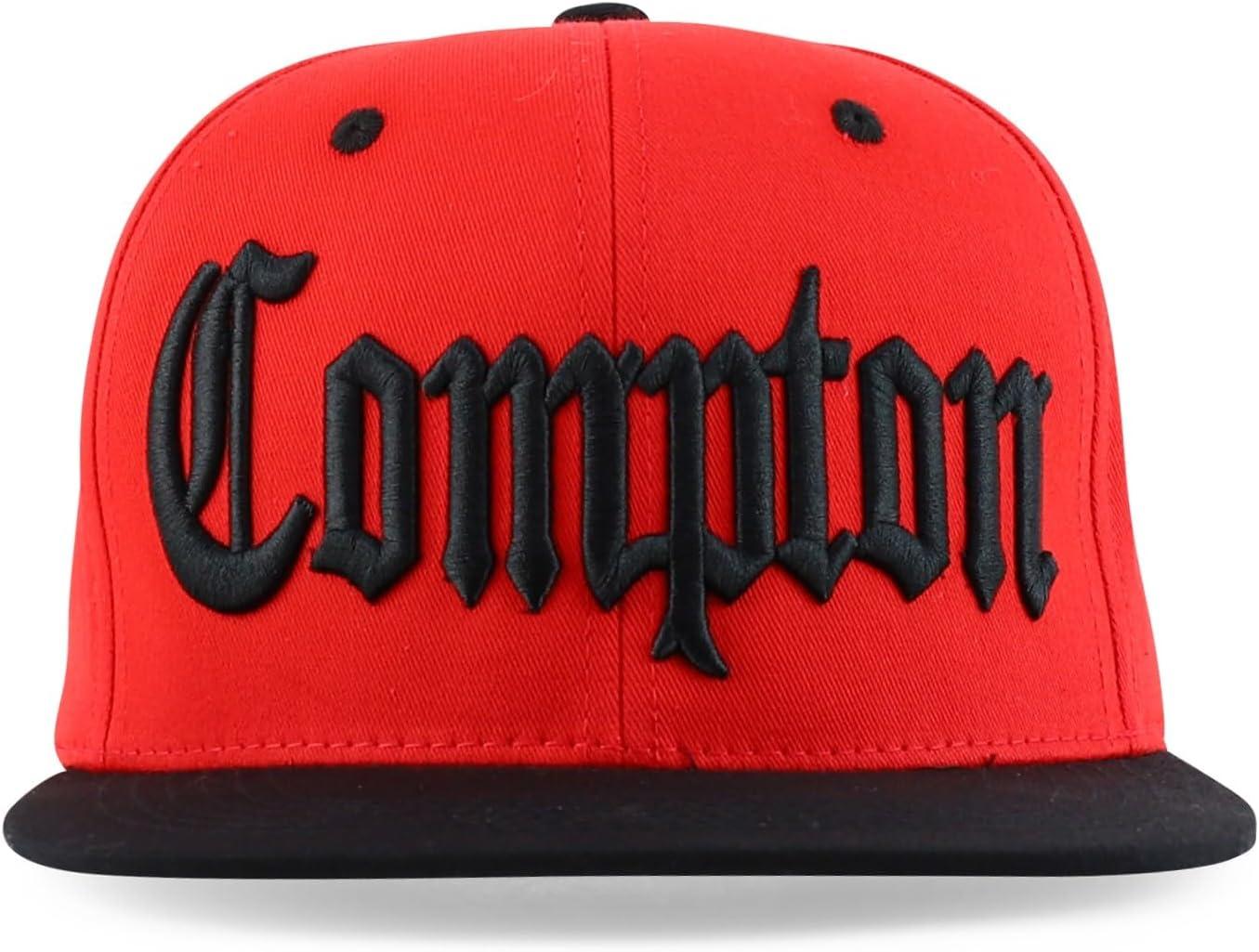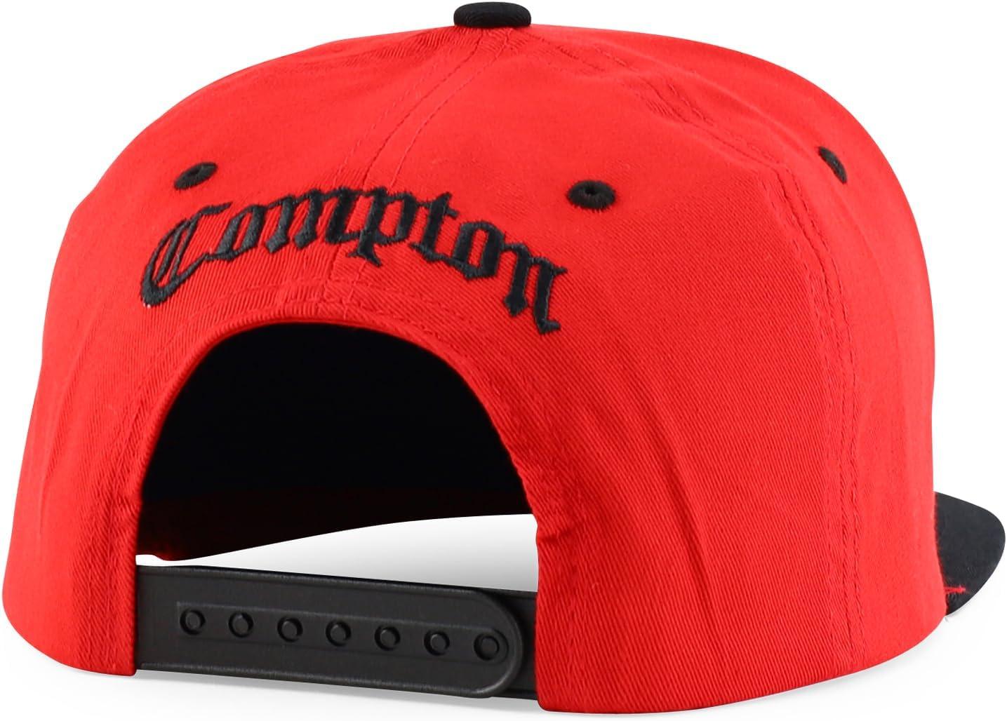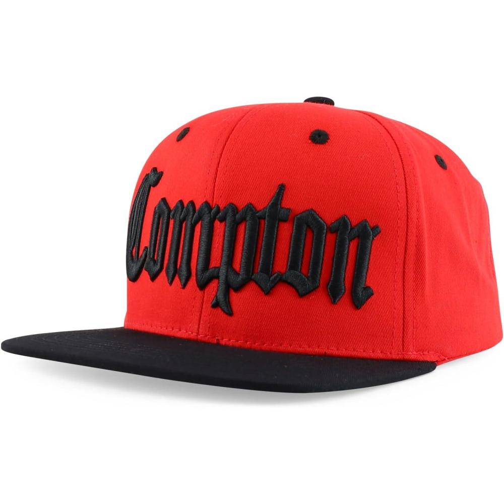 Be the first to review “Trendy Apparel Shop 3D Compton Old English Font Embroidered Flat Bill Snapback Cap(Red Black)”