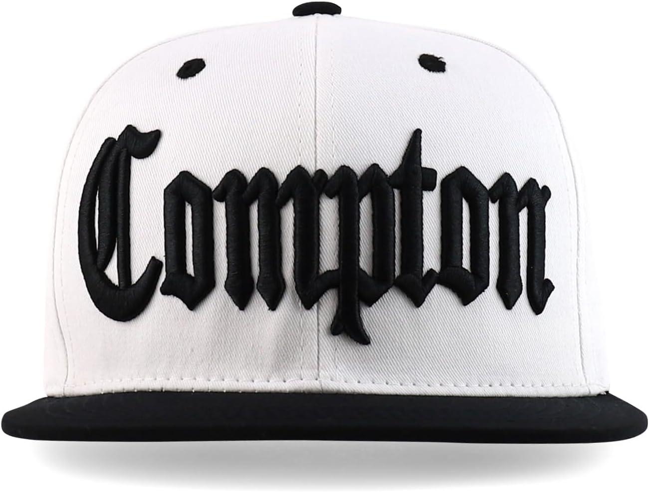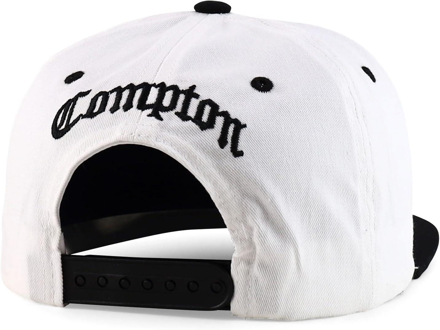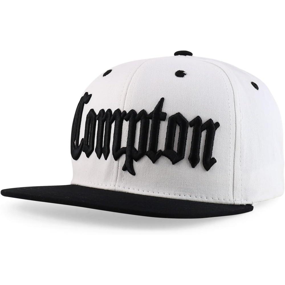 Be the first to review “Trendy Apparel Shop 3D Compton Old English Font Embroidered Flat Bill Snapback Cap(White Black)”