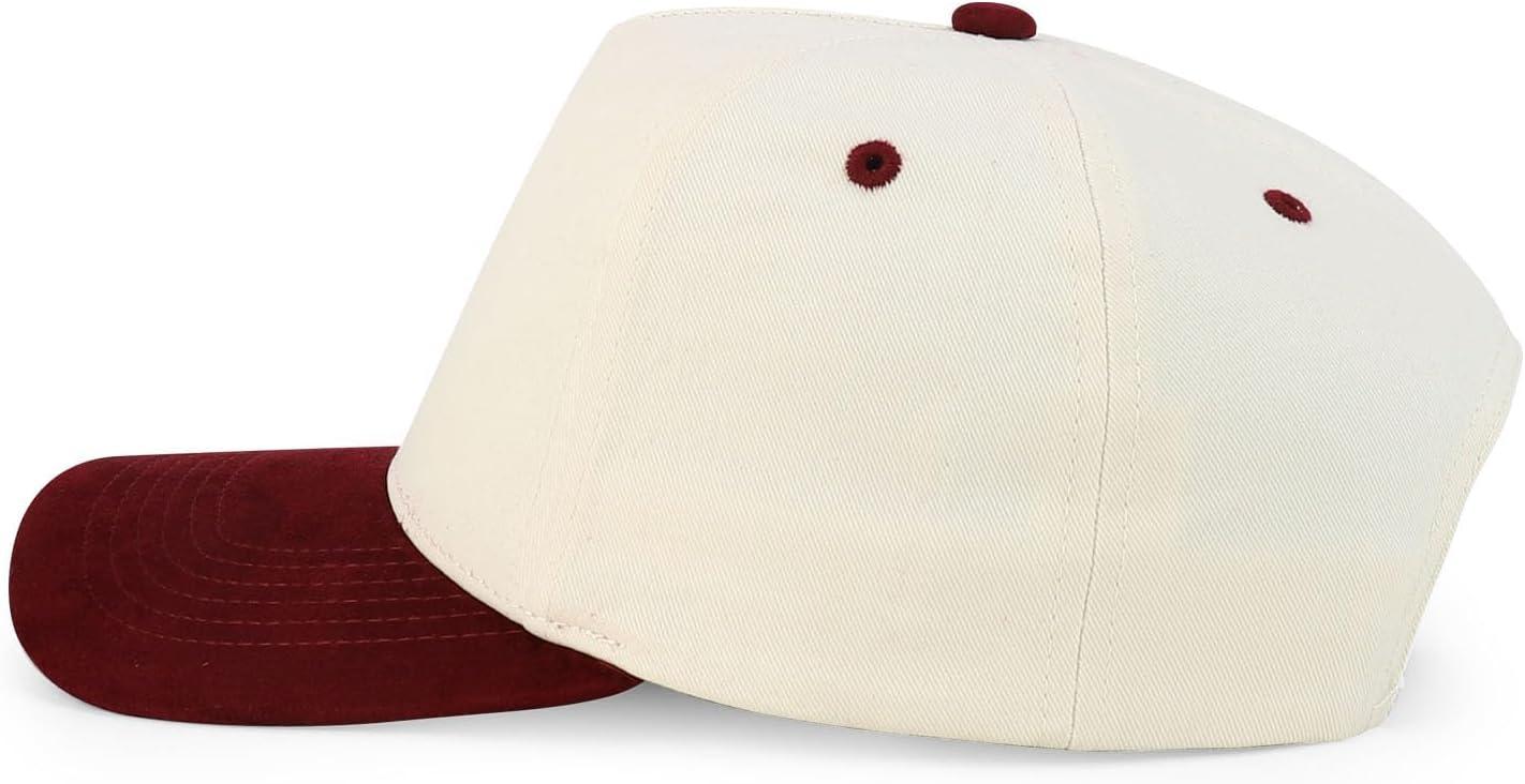 Trendy Apparel Shop 5 Panel Cotton and Suede Combo Snapback Baseball Cap(Stone Burgundy)