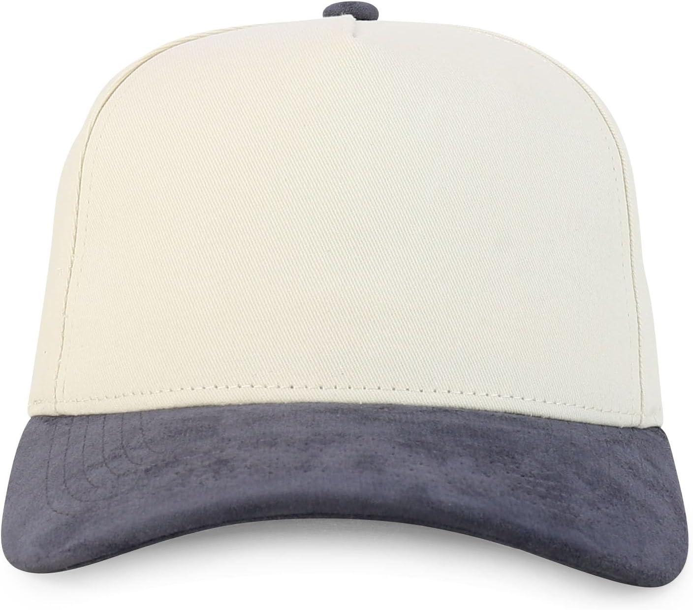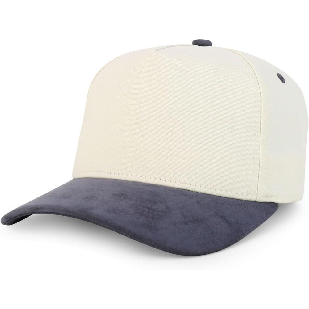 Trendy Apparel Shop 5 Panel Cotton and Suede Combo Snapback Baseball Cap(Stone Navy)