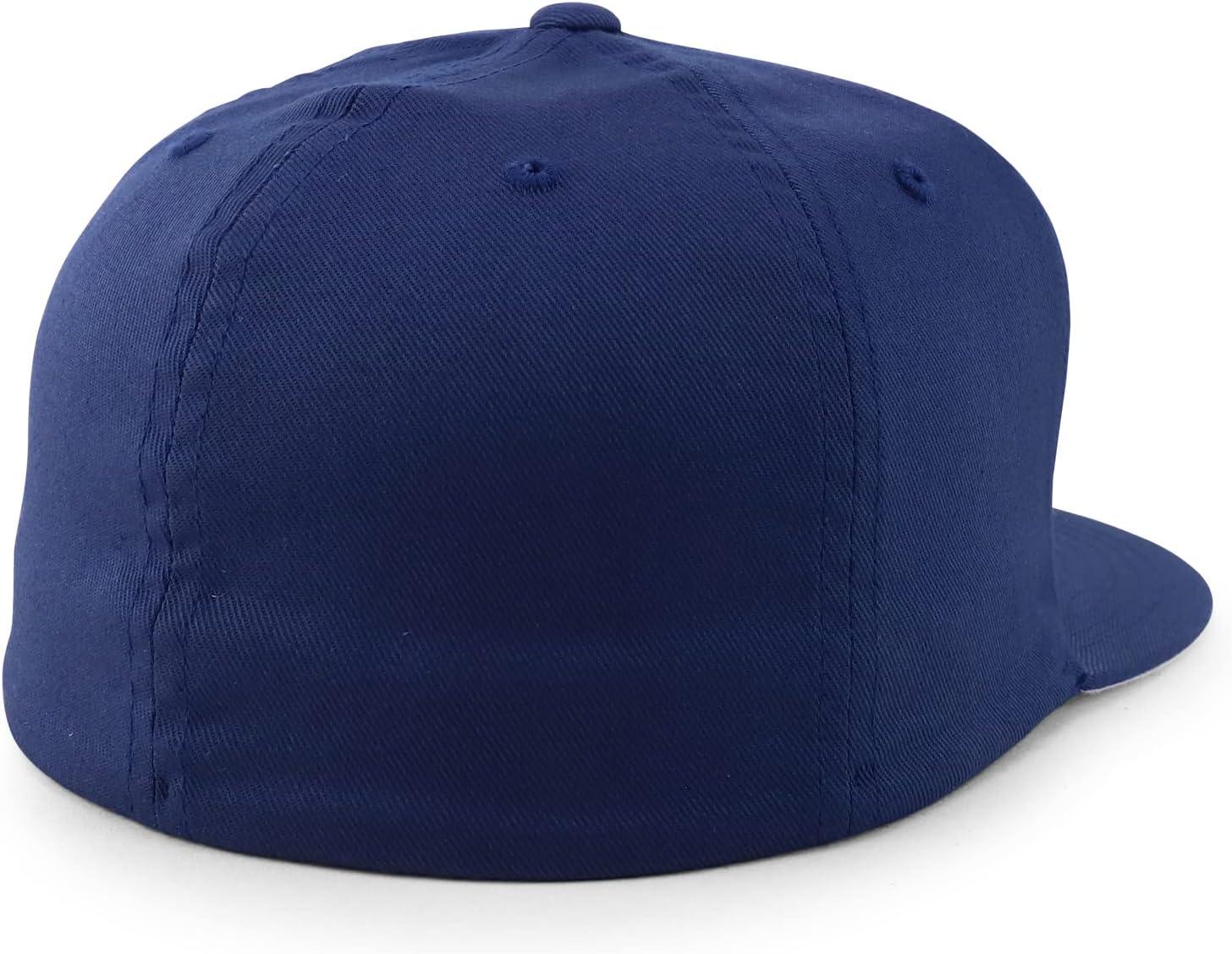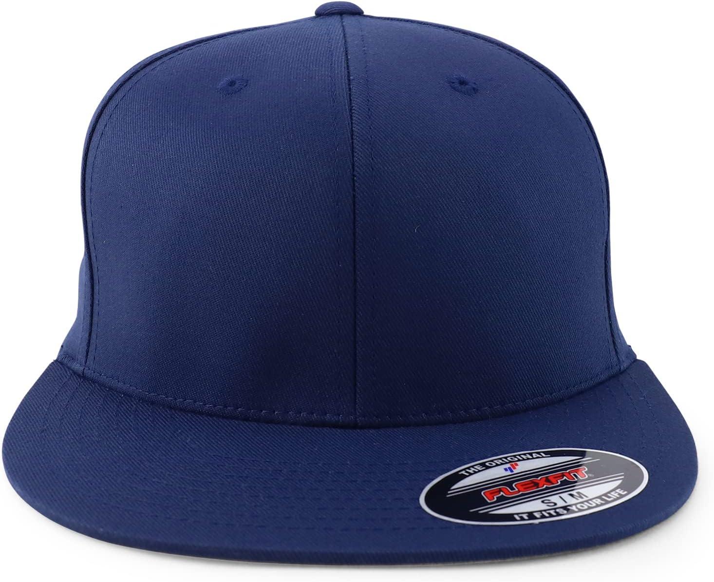 Trendy Apparel Shop 6 Panel Structured Blank Flatbill Fitted Closure Flexfit Cap(Navy)