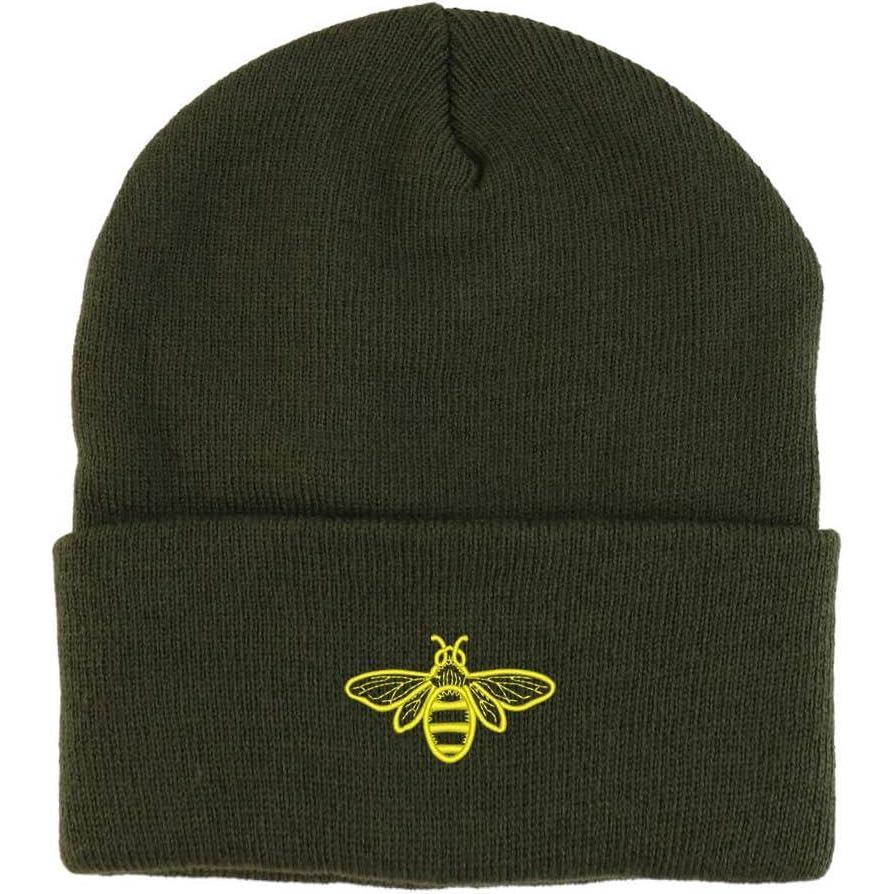 Trendy Apparel Shop Bee Embroidered Winter Long Cuff Beanie(Olive)