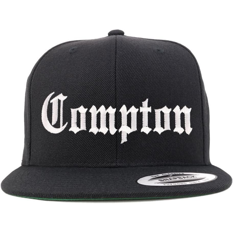 Trendy Apparel Shop Compton City Old English Embroidered Flatbill Snapback Baseball Cap(Black)