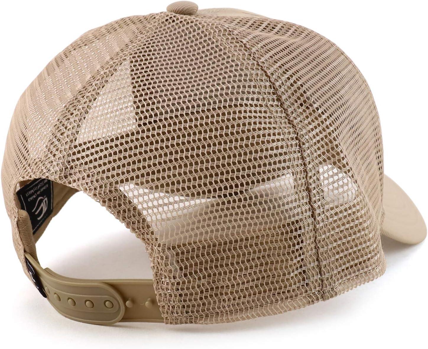 Trendy Apparel Shop Debossed Stars and Striped Trucker Mesh Back Baseball Cap(Khaki)