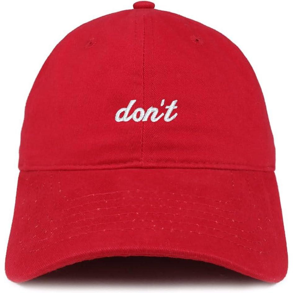 Be the first to review “Trendy Apparel Shop Don’t Embroidered Brushed Cotton Adjustable Cap Dad Hat(Red)”