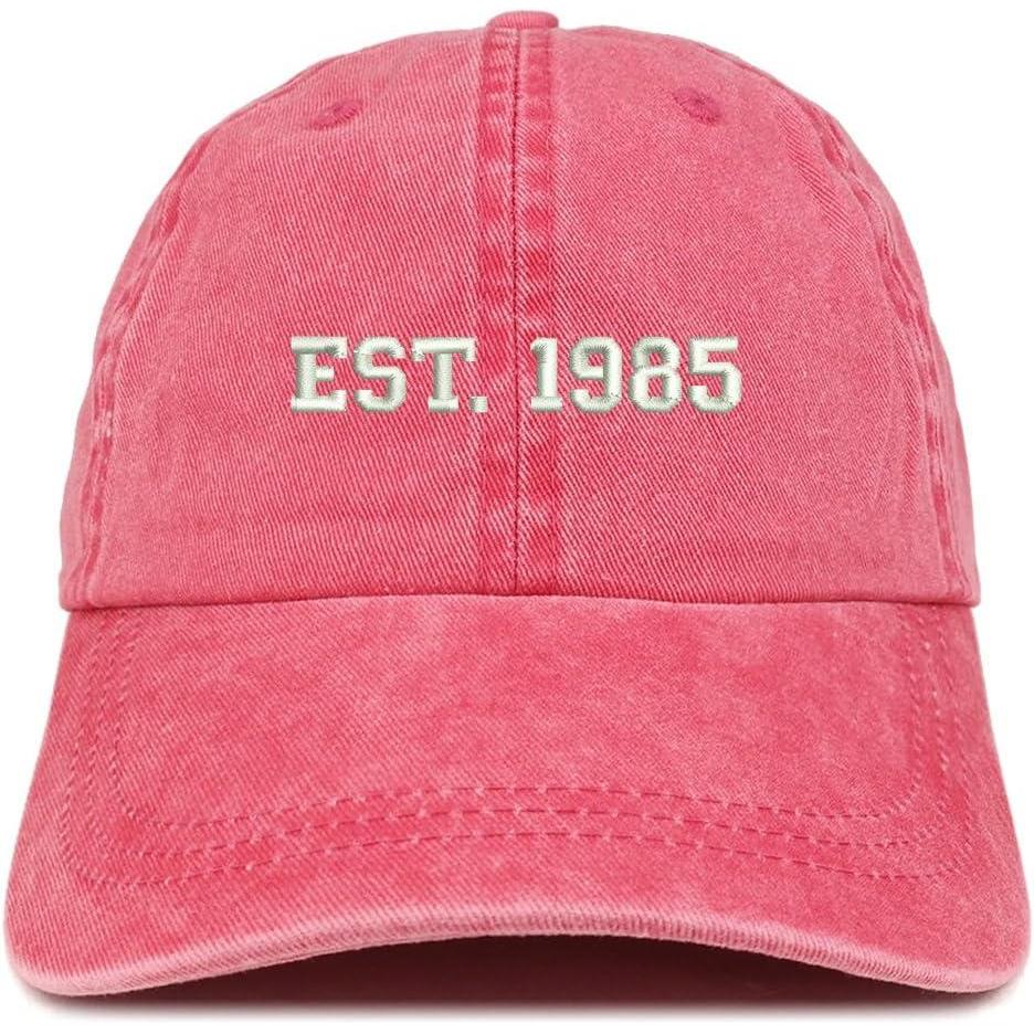 Trendy Apparel Shop EST 1985 Embroidered – 40th Birthday Gift Pigment Dyed Washed Cap(Red)