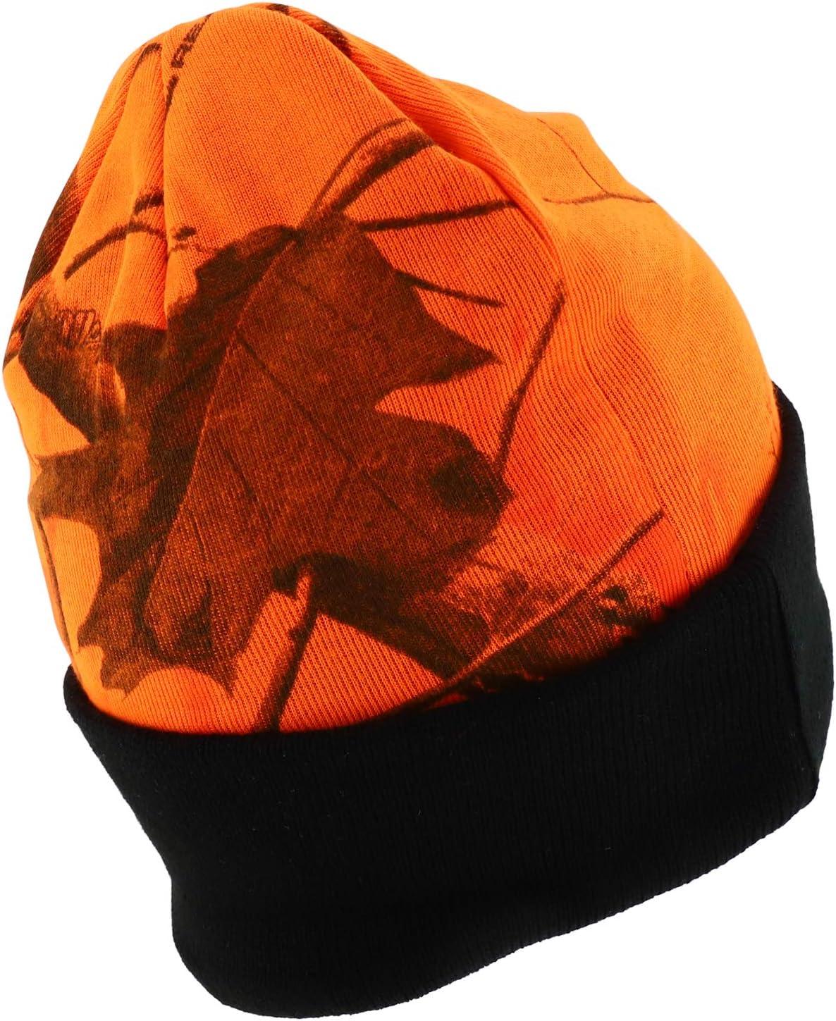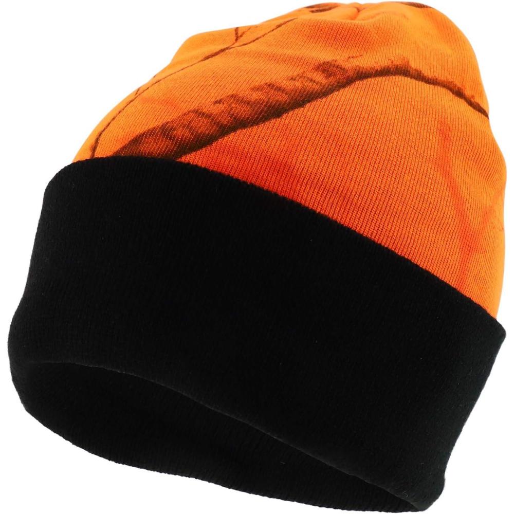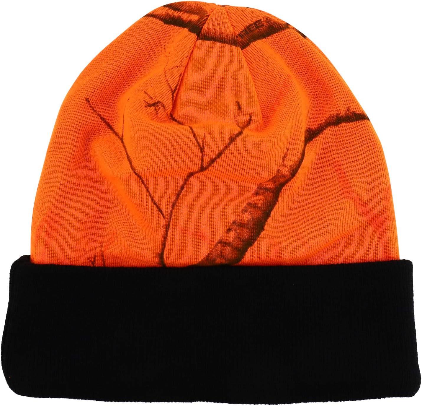 Trendy Apparel Shop Hunting Camo Knit Long Cuff Fold Beanie with Acrylic Lining(Blaze)