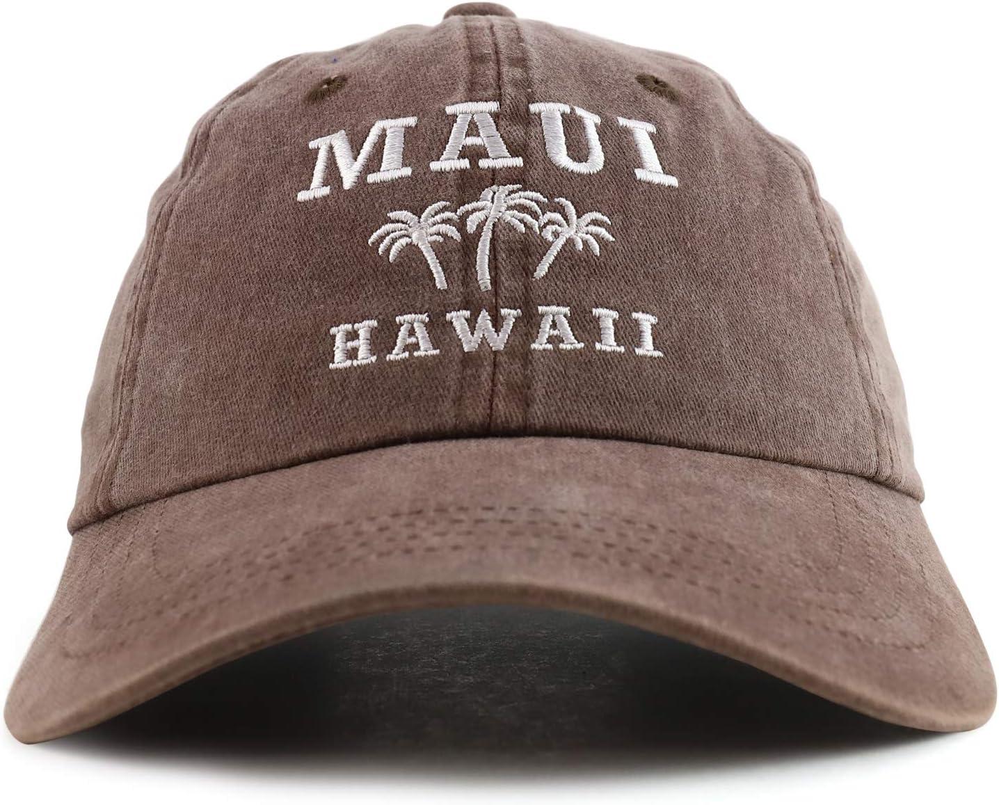 Trendy Apparel Shop Maui Hawaii with Palm Tree Embroidered Unstructured Baseball Cap(Brown)