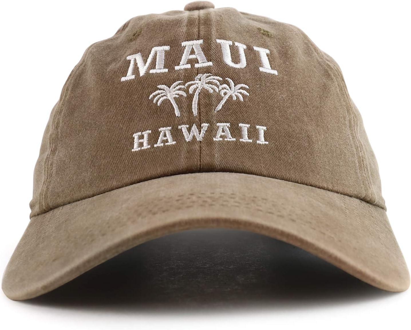 Trendy Apparel Shop Maui Hawaii with Palm Tree Embroidered Unstructured Baseball Cap(Dark Beige)