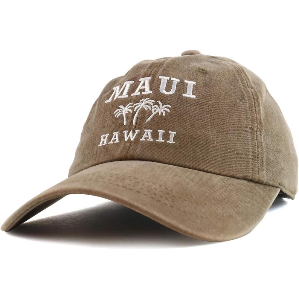 Be the first to review “Trendy Apparel Shop Maui Hawaii with Palm Tree Embroidered Unstructured Baseball Cap(Dark Beige)”