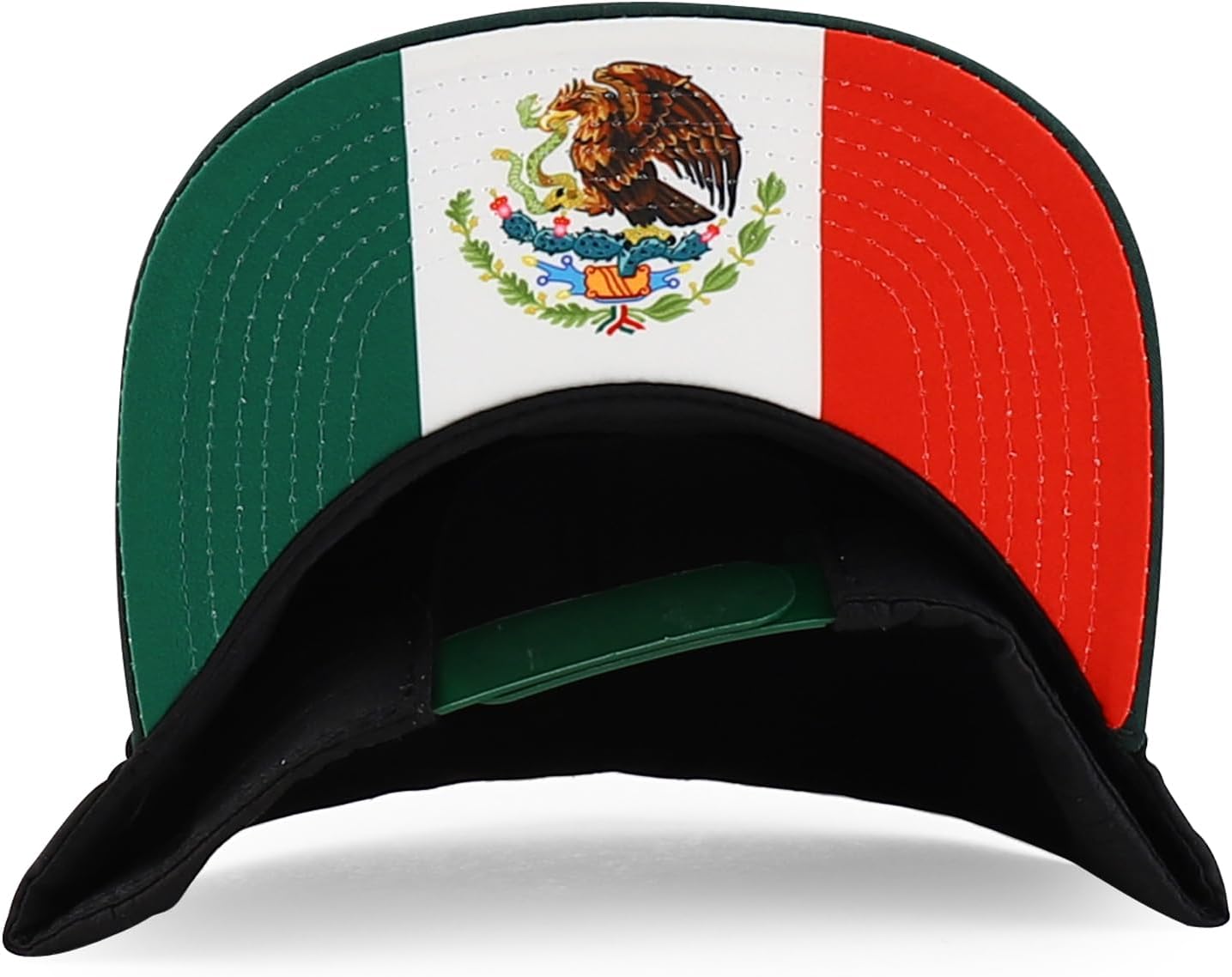 Elevate your style with the Trendy Apparel Shop Mexico Guadalupe Embroidered Flat Bill Snapback Cap. Crafted from high-quality fabric and materials, this cap ensures both durability and comfort. With its structured crown and six-panel design, it offers a classic yet contemporary look. Showcasing the iconic Mexico flag embroidered on the side and the Mexico flag design under the visor, this cap exudes national pride and cultural significance. The stiff and flat bill adds a touch of modernity to your ensemble, while the adjustable snap closure guarantees a secure and customized fit for all head sizes. Designed for ultimate comfort, this cap features sewn eyelets for ventilation, keeping you cool and comfortable throughout the day. Whether you're hitting the streets or attending a special event, make a bold statement with the Mexico Guadalupe Embroidered Flat Bill Snapback Cap.