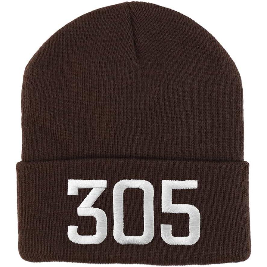 Trendy Apparel Shop Miami 305 Old English Embroidered Long Cuff Beanie. 100% Acrylic. High quality embroidered cuff long beanie hat, 100% Embroidered in USA . Classic Soft and Warm Folded Long Beanie. Easily stretchable, ensures a comfortable fit for most head types. Length is about 12 inches long unfolded. One Size Fits Most .