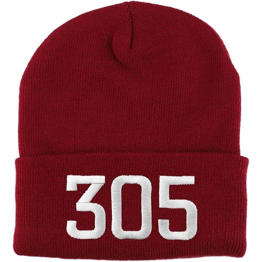 Trendy Apparel Shop Miami 305 Old English Embroidered Long Cuff Beanie. 100% Acrylic. High quality embroidered cuff long beanie hat, 100% Embroidered in USA . Classic Soft and Warm Folded Long Beanie. Easily stretchable, ensures a comfortable fit for most head types. Length is about 12 inches long unfolded. One Size Fits Most .
