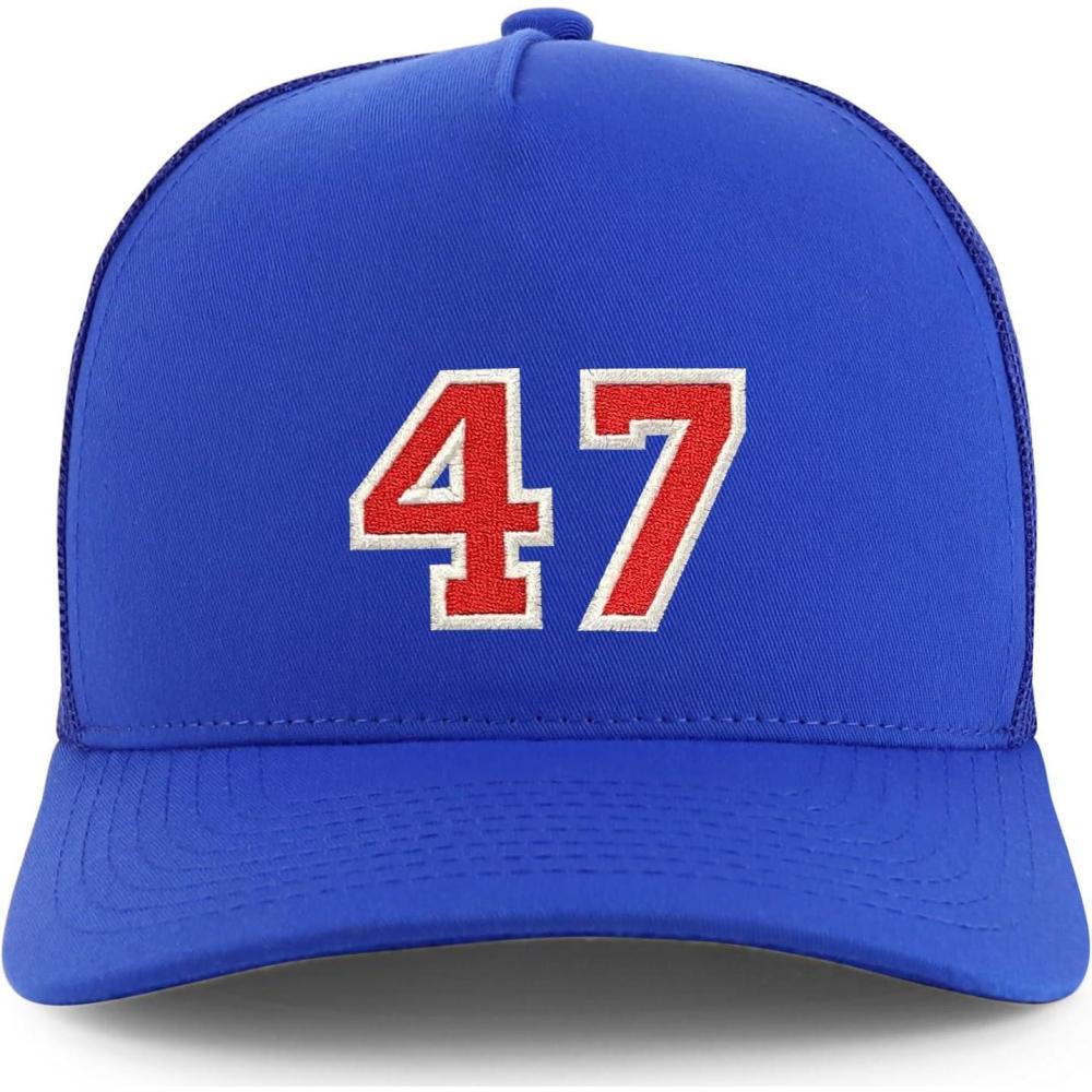 Trendy Apparel Shop Number 47 Varsity Font Embroidered 5 Panel Structured Snapback Cap(Royal)