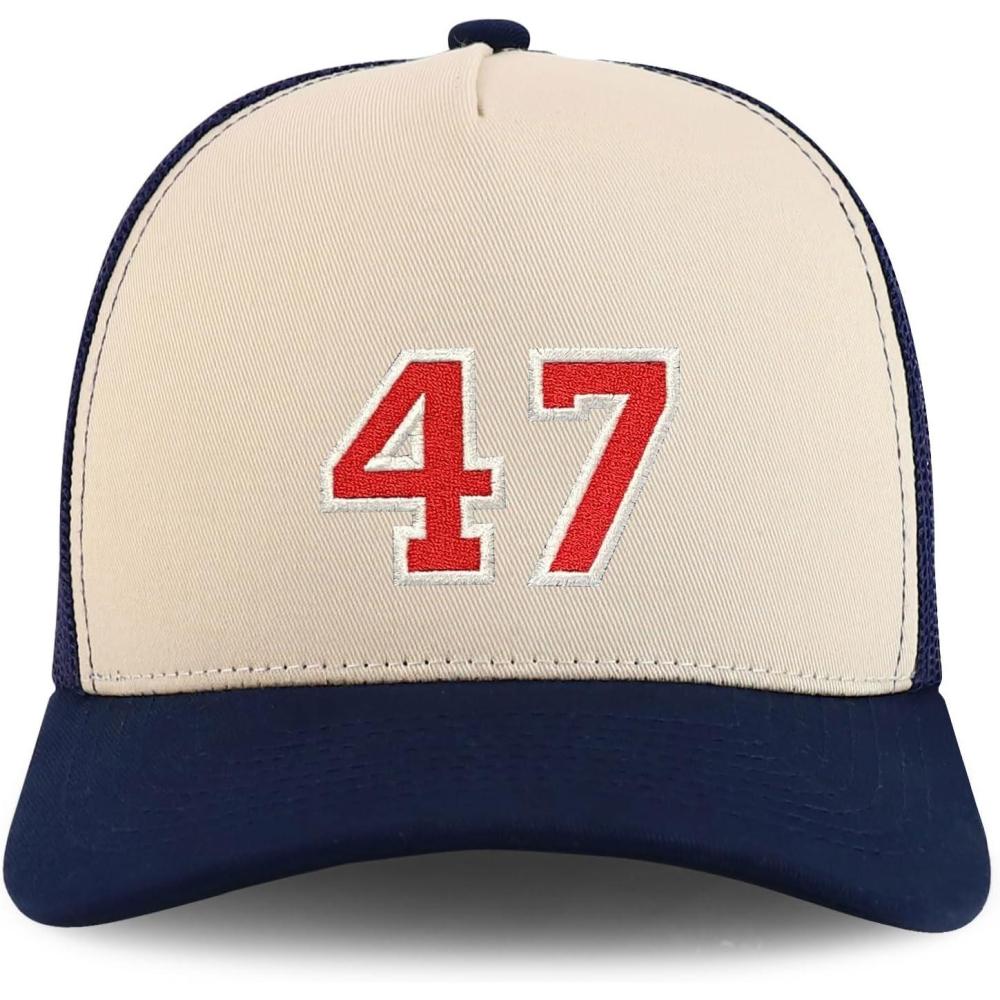 Trendy Apparel Shop Number 47 Varsity Font Embroidered 5 Panel Structured Snapback Cap(Stone Navy)