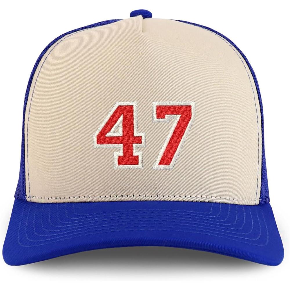 Trendy Apparel Shop Number 47 Varsity Font Embroidered 5 Panel Structured Snapback Cap(Stone Royal)