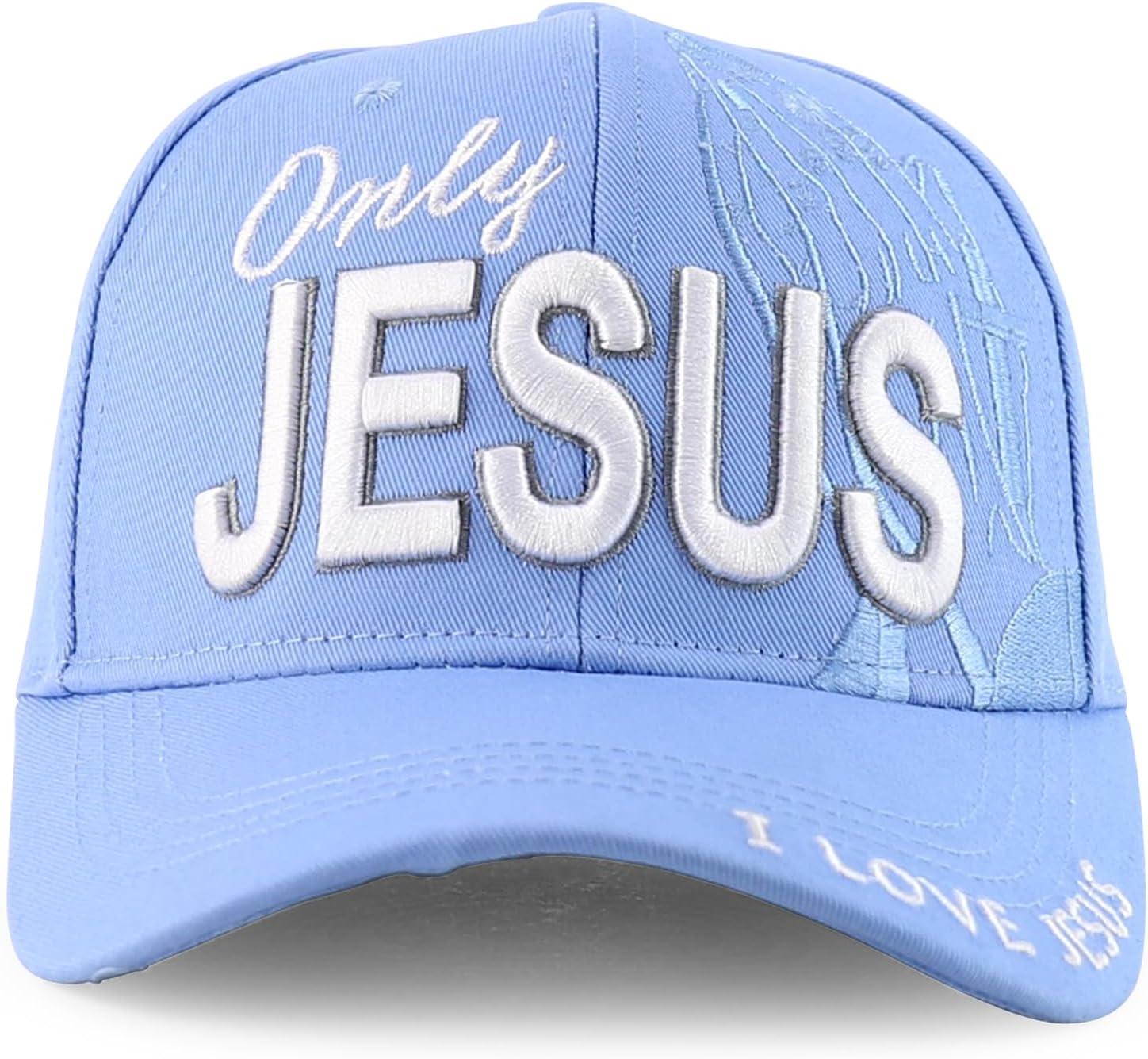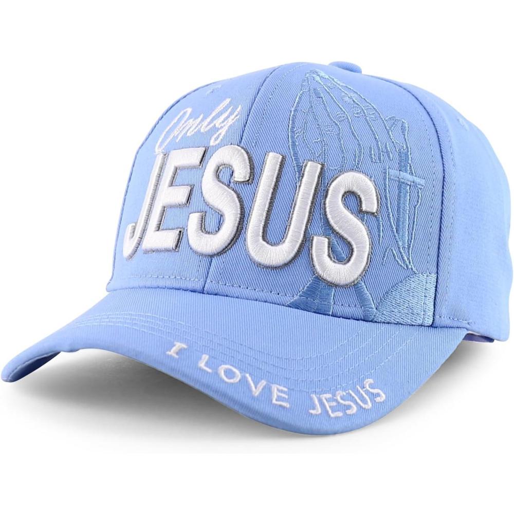 Trendy Apparel Shop Only Jesus Praying Hand Embroidered Christian Ball Cap(Sky)