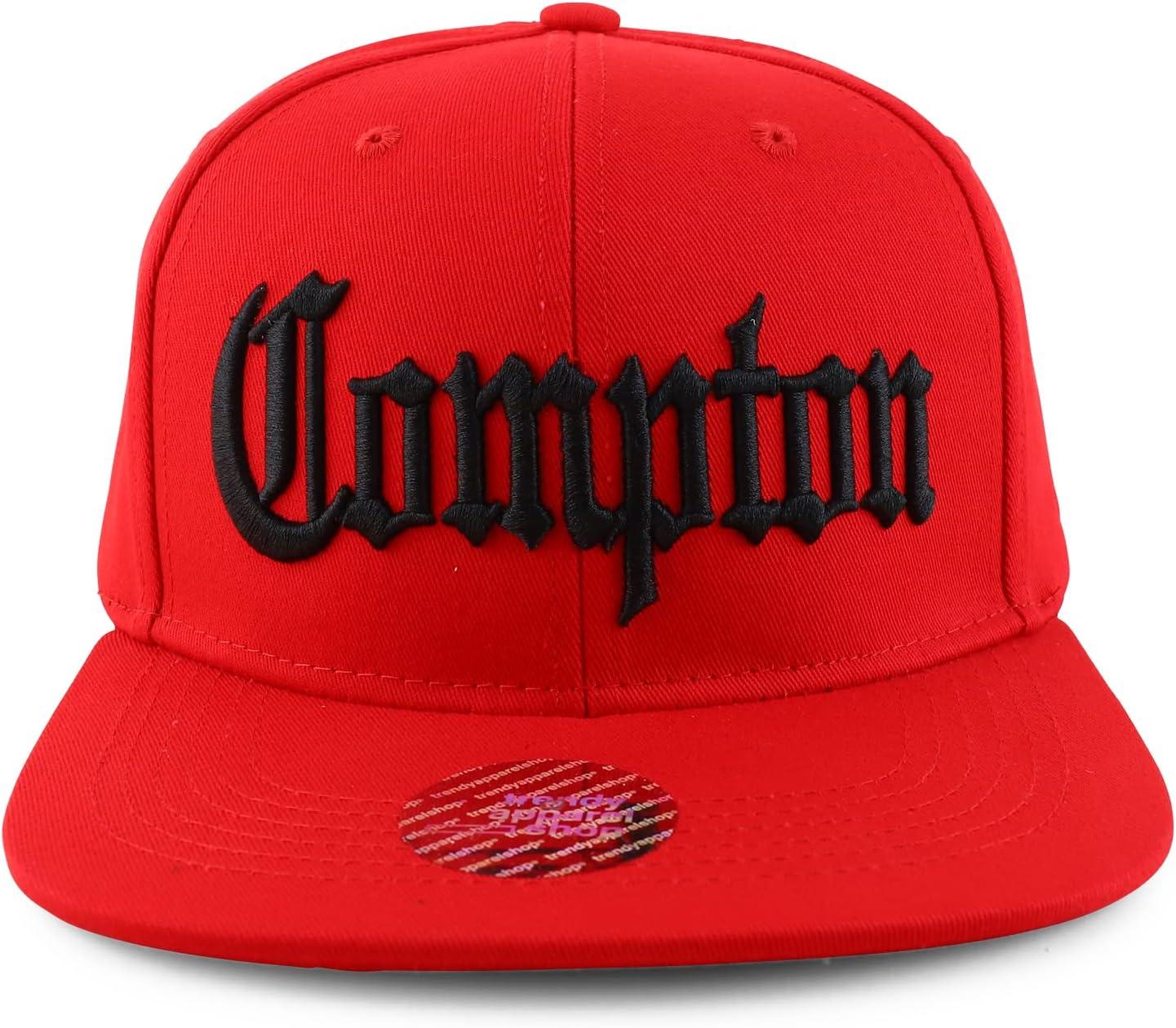 imageTrendy Apparel Shop Oversize XXL Old English Compton Embroidered Flatbill Snapback Baseball CapRed Black