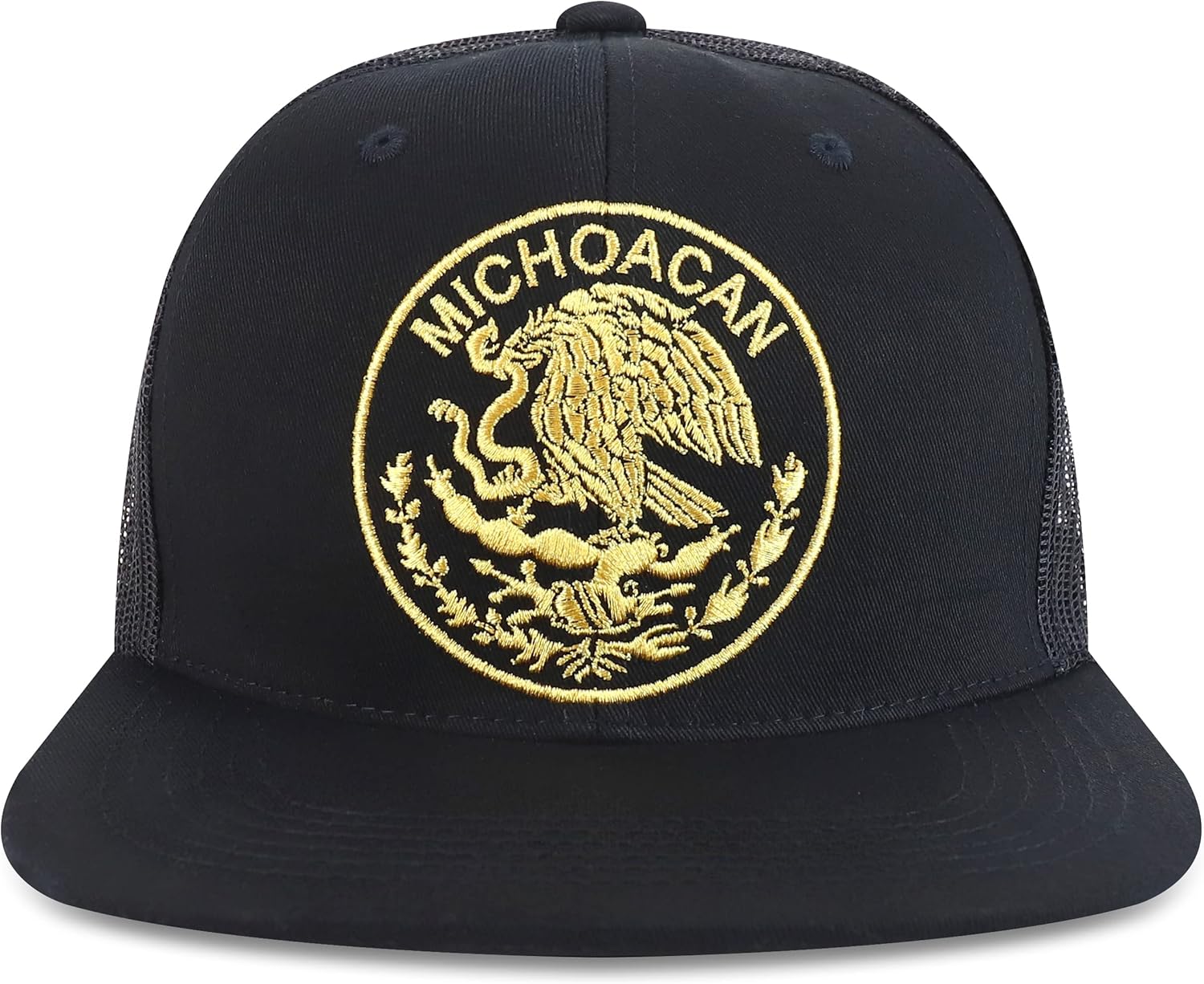 Trendy Apparel Shop Oversized XXL City of Mexico Eagle Embroidered Flat Bill Trucker Mesh Cap(Michoacan)