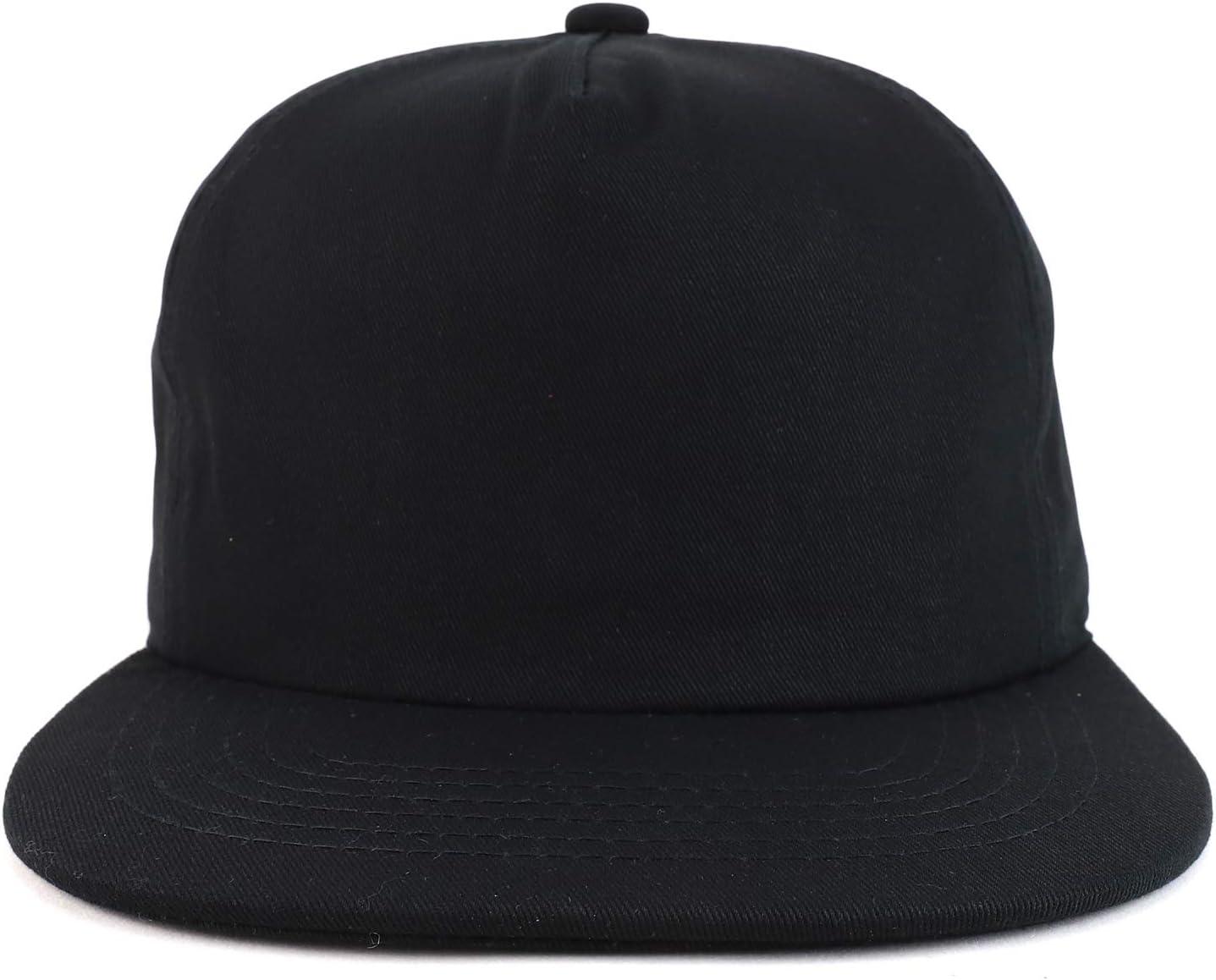 Trendy Apparel Shop Plain Unstructured 5 Panel Flat Bill Snapback Baseball Cap. 100% Cotton . Lightweight and fashionable casual plain snapback for everyone. 5 Panels, Low Profile, Unstructured Crown, 4 eyelets. Stiff and flat bill, Same color under bill, Fitted with an inner cotton sweatband. Adjustable plastic snap closure. One Size Fits Most.