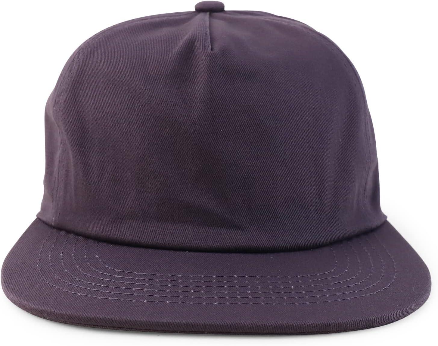 Trendy Apparel Shop Plain Unstructured 5 Panel Flat Bill Snapback Baseball Cap. 100% Cotton . Lightweight and fashionable casual plain snapback for everyone. 5 Panels, Low Profile, Unstructured Crown, 4 eyelets. Stiff and flat bill, Same color under bill, Fitted with an inner cotton sweatband. Adjustable plastic snap closure. One Size Fits Most.