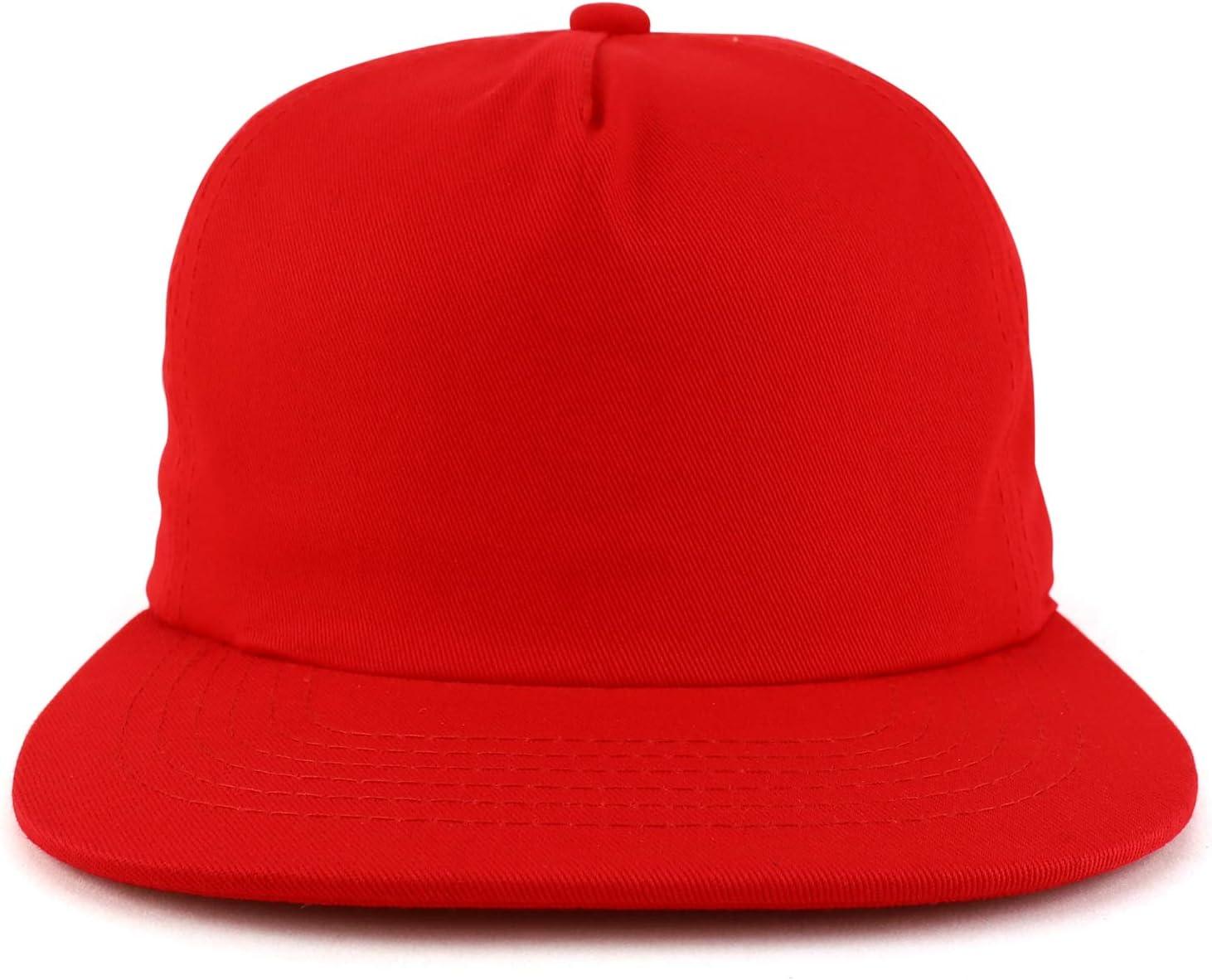 Trendy Apparel Shop Plain Unstructured 5 Panel Flat Bill Snapback Baseball Cap(Red)