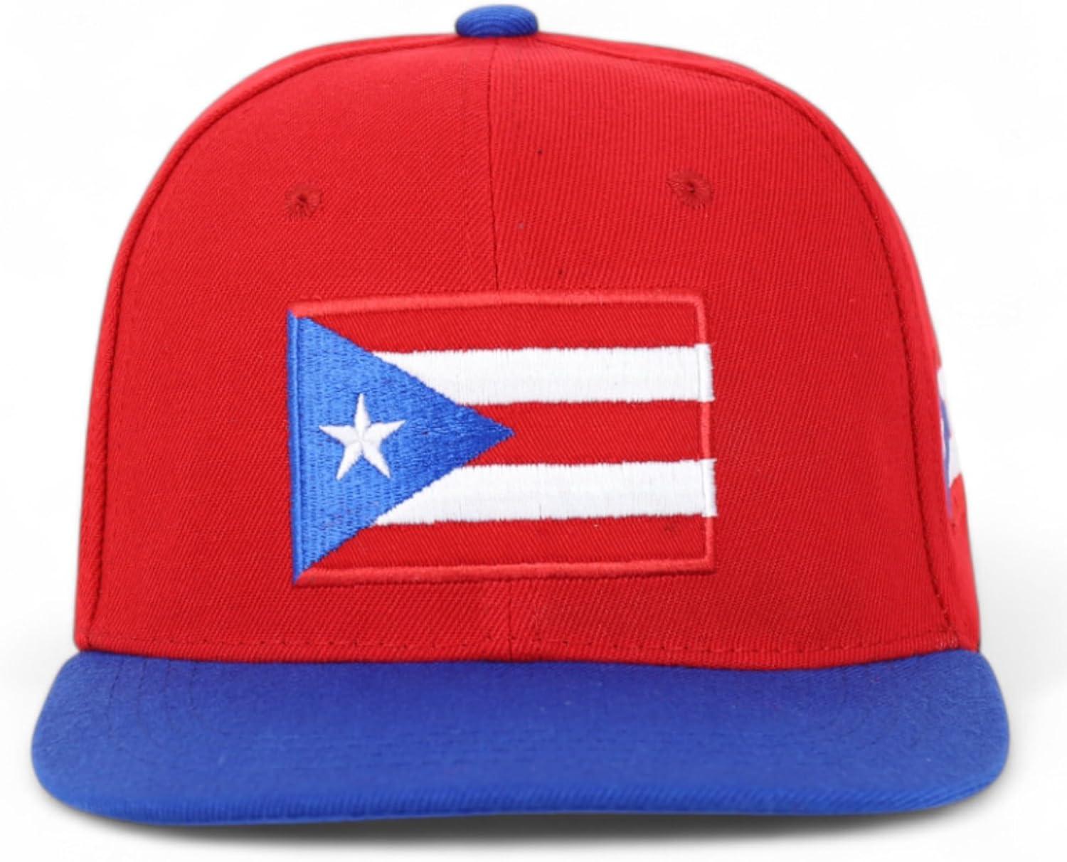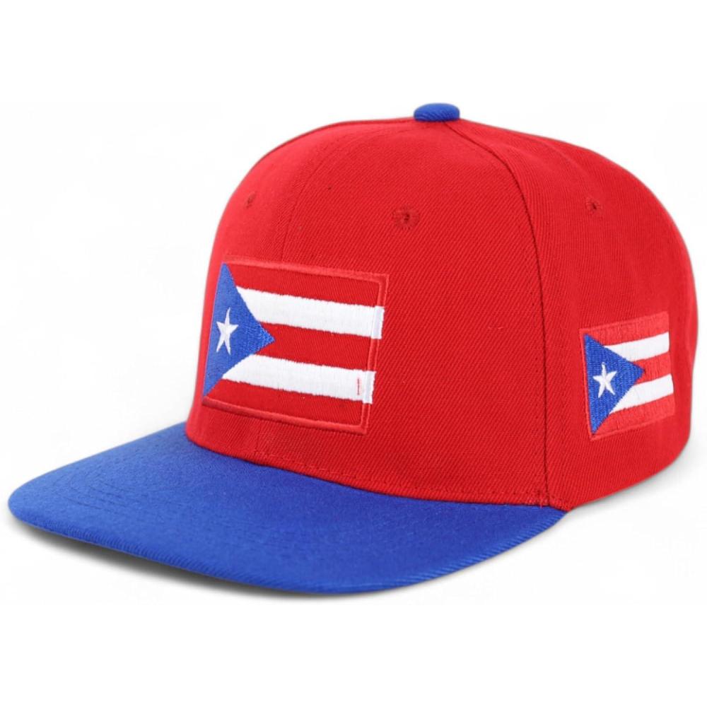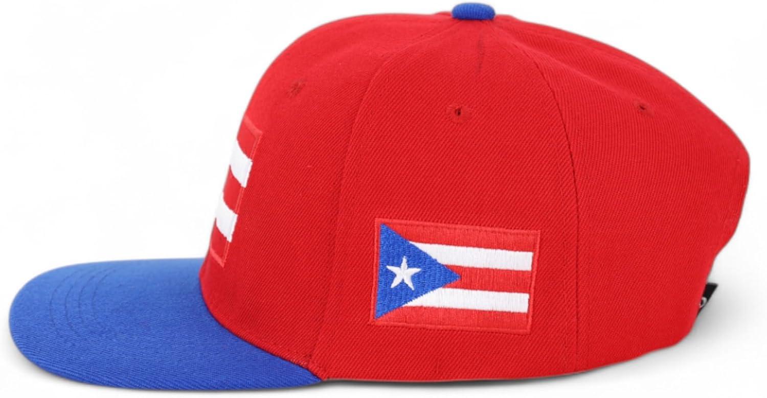 imageTrendy Apparel Shop Puerto Rico Embroidered Round Flat Bill Snapback CapRed Red 1