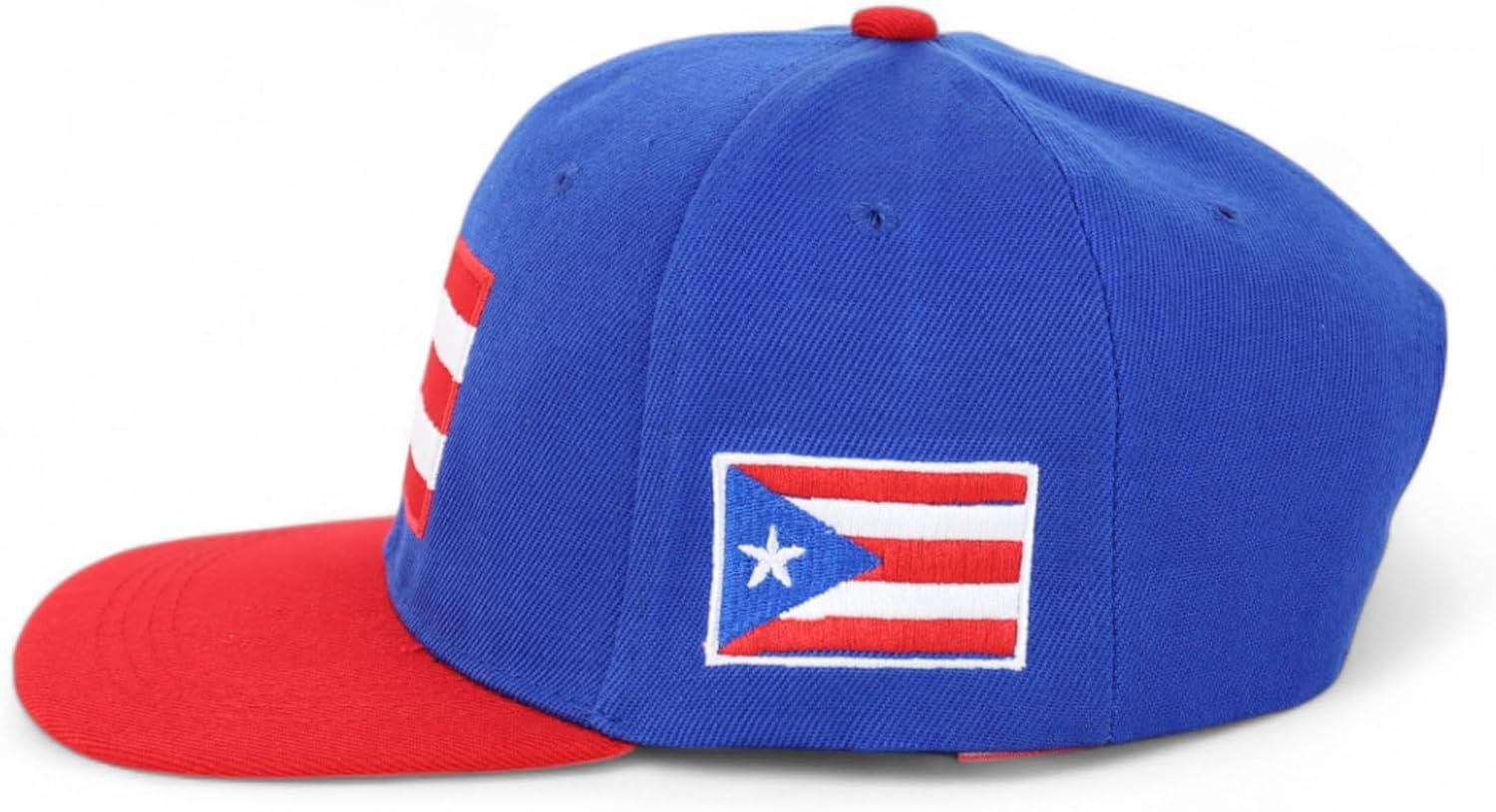 imageTrendy Apparel Shop Puerto Rico Embroidered Round Flat Bill Snapback CapRed Royal