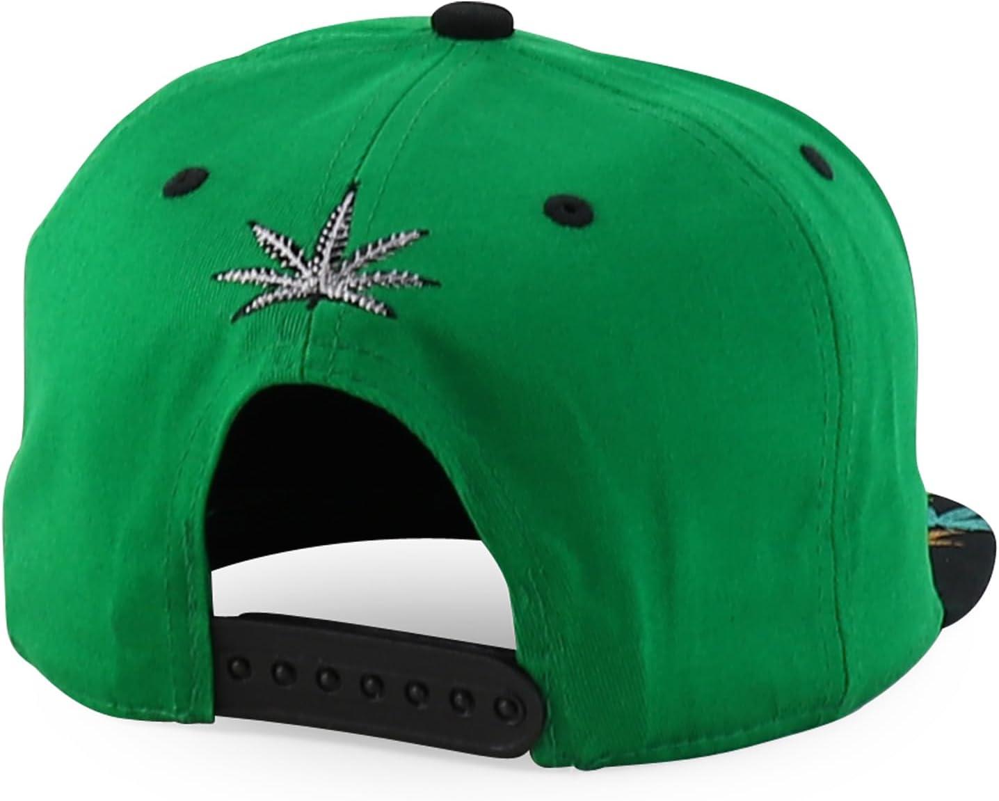 Trendy Apparel Shop Rasta Marijuana Leaf Weed 3D Embroidered Flat Bill Snapback Cap(Kelly Green Black 3)