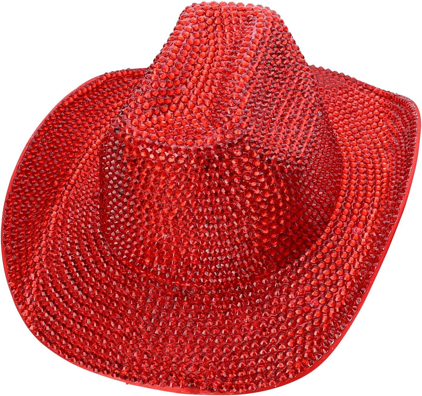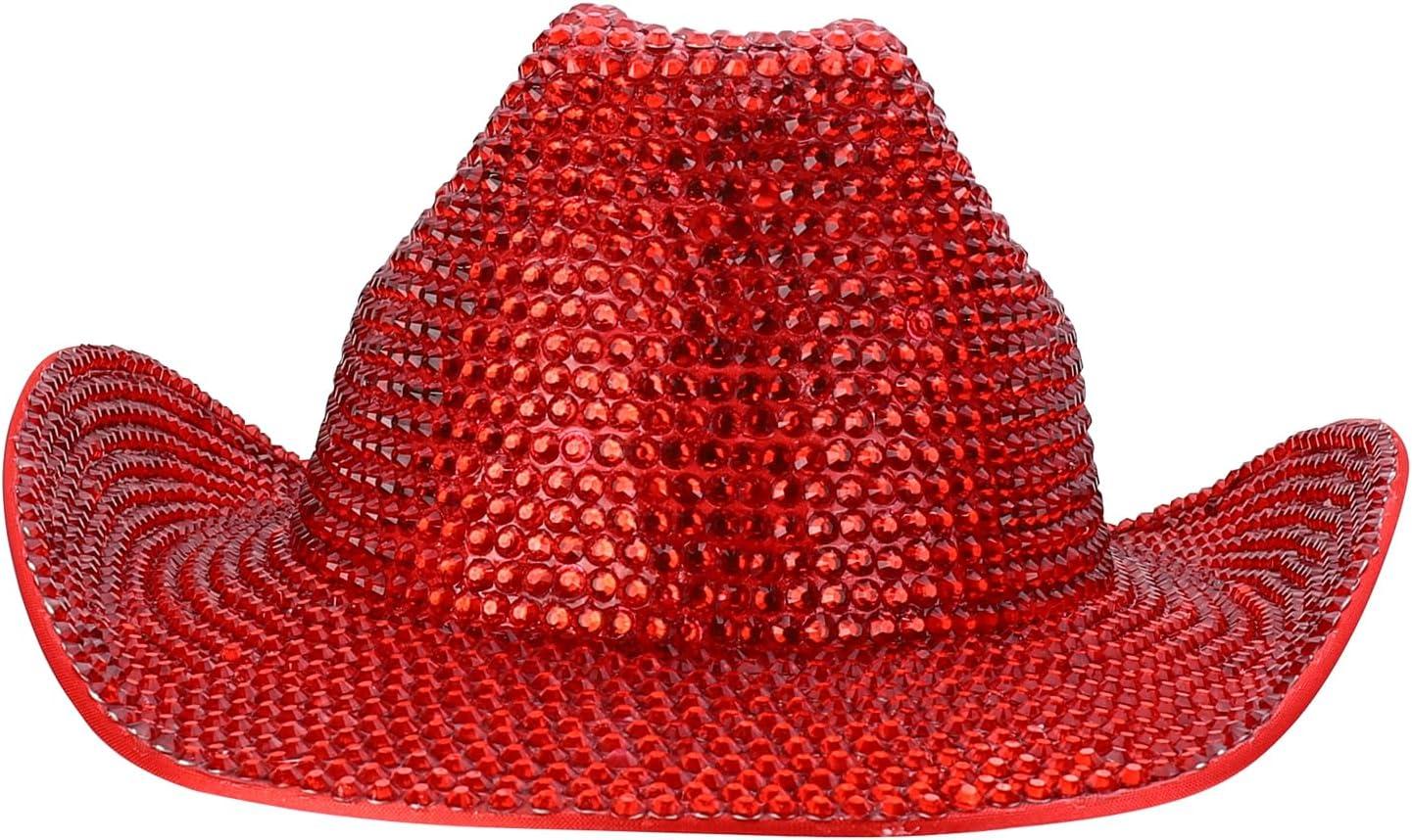 Trendy Apparel Shop Rhinestone Studded Bling Western Cowboy Cowgirl Hat(Red 1)