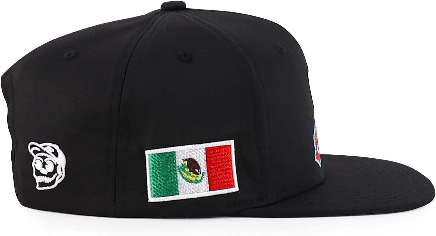Introducing the Trendy Apparel Shop Senor Embroidered 6 Panel Structured Flatbill Snapback Cap, the perfect blend of style and quality. Crafted from high-quality fabric and materials, this cap ensures durability and comfort for all-day wear. Featuring a structured crown and six-panel design, this cap offers a classic look with a modern twist. The iconic Mexico flag is expertly embroidered on the side, while the flag design is elegantly displayed under the visor, adding a touch of national pride to your ensemble. Designed for optimal comfort, this cap includes sewn eyelets for ventilation, keeping you cool and comfortable even in the warmest weather. The stiff and flat bill adds a contemporary edge, while the adjustable snap closure guarantees a secure fit for most head sizes. Whether you're hitting the streets or heading to a special event, make a statement with the Senor Snapback Cap from Trendy Apparel Shop.