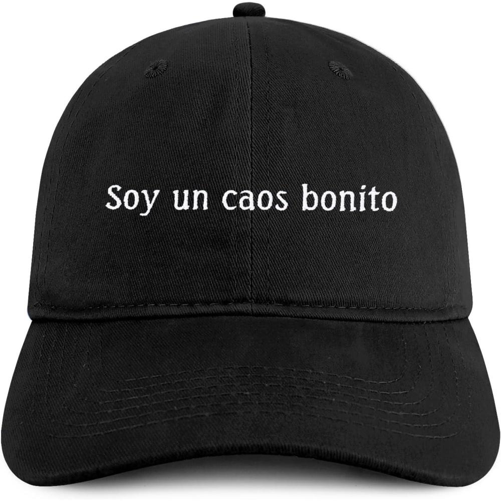 Score big on Trendy Apparel Shop Soy un caos Bonito Embroidered Cotton Unstructured Low Profile Dad Hat(Black) and accessories during our BOGO sale. Buy one, get one 50% off!