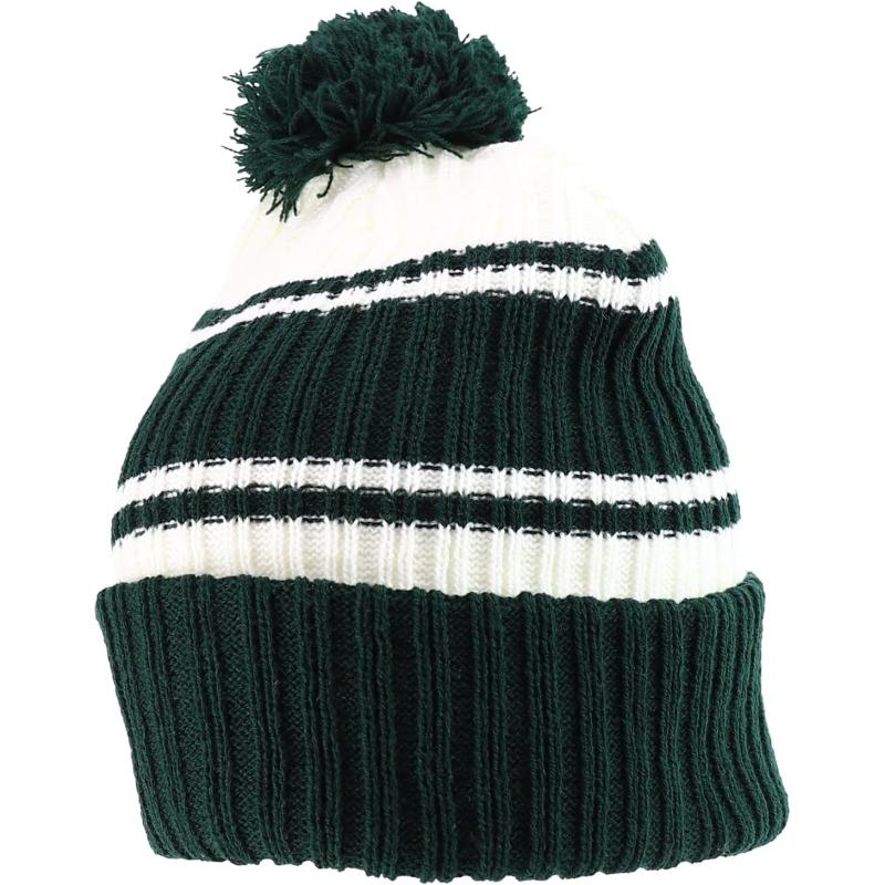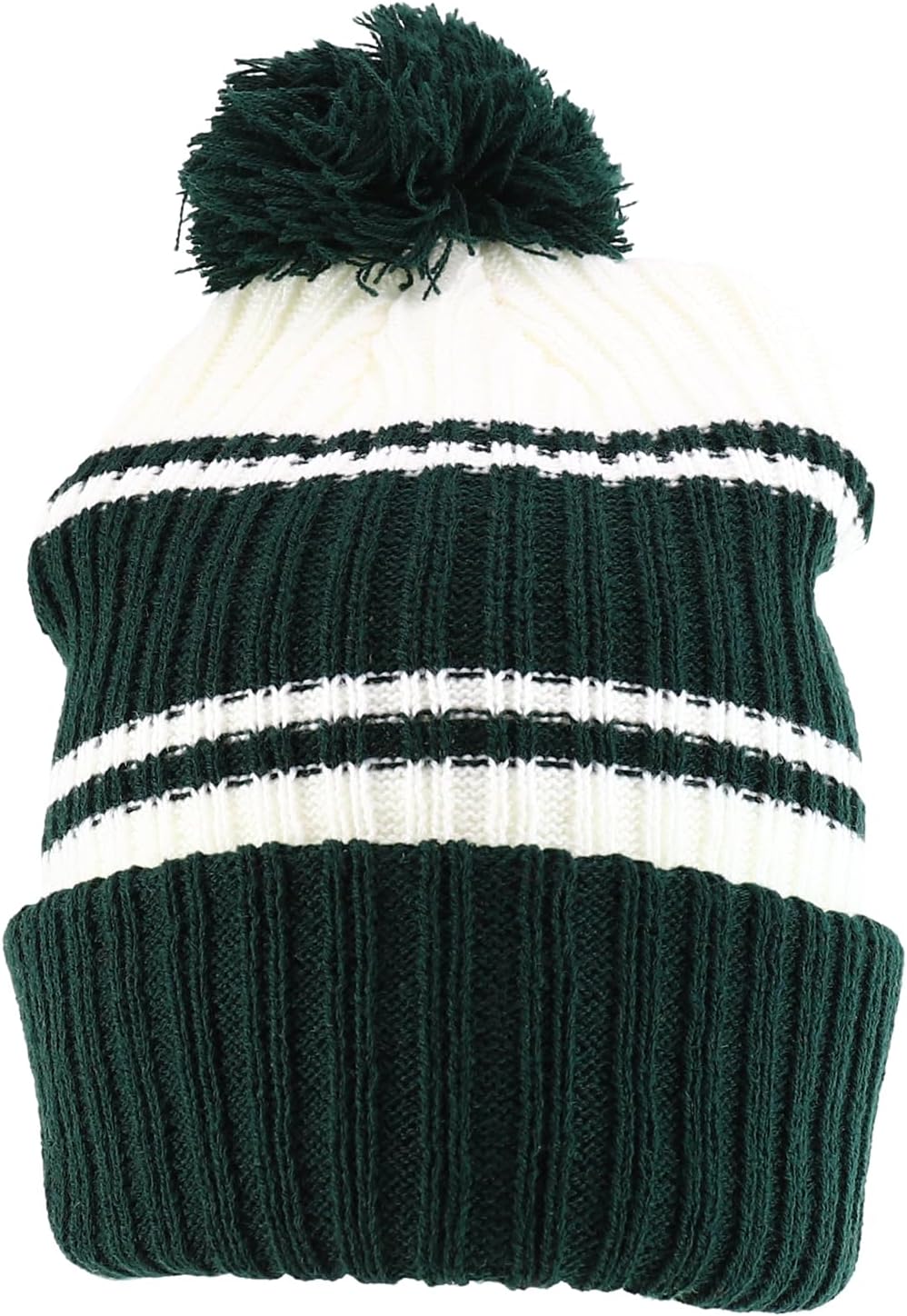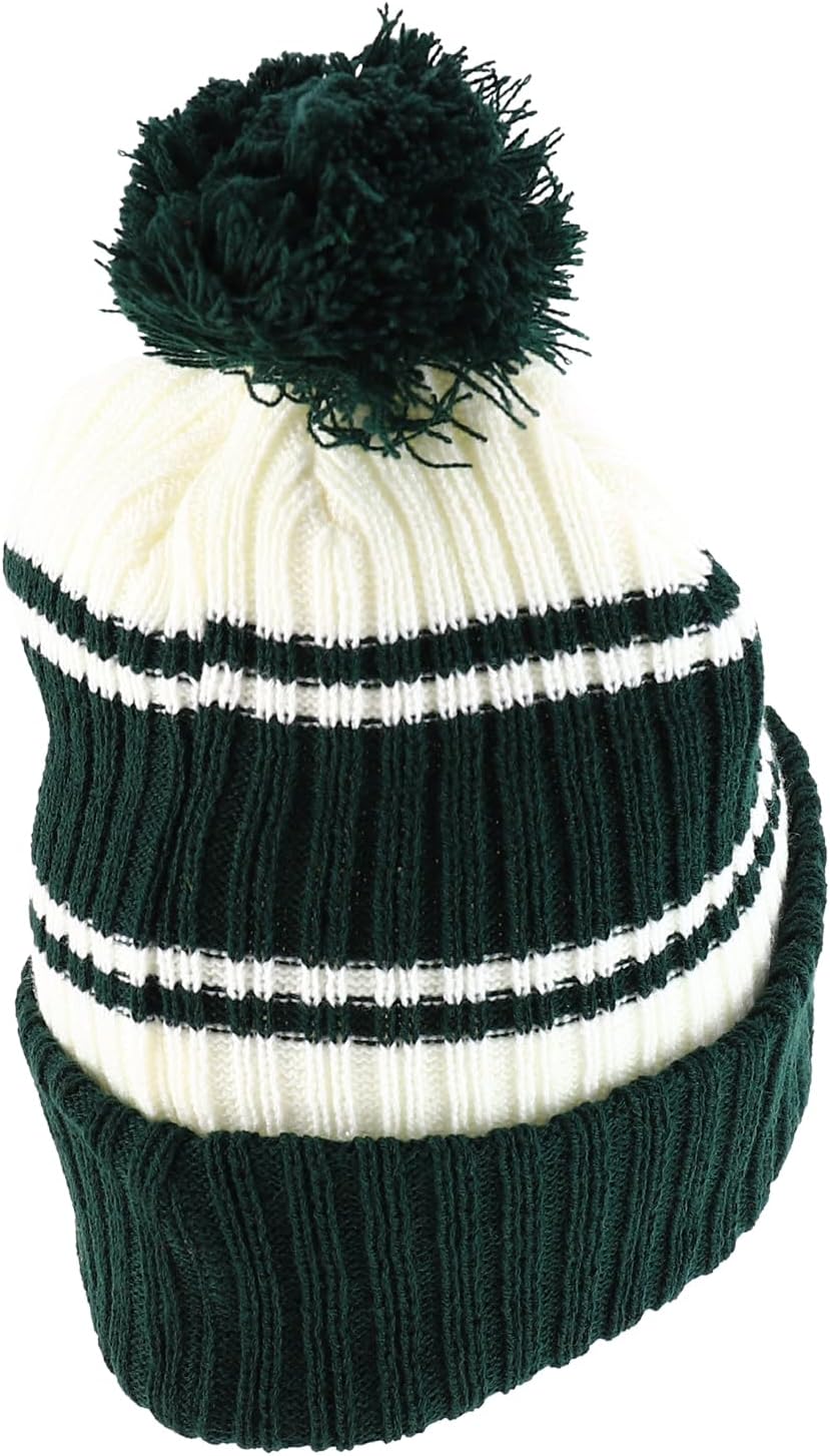 Trendy Apparel Shop Stripe Pattern Ribbed Knit Cuff Long Beanie with Pom Pom(Hunter White)
