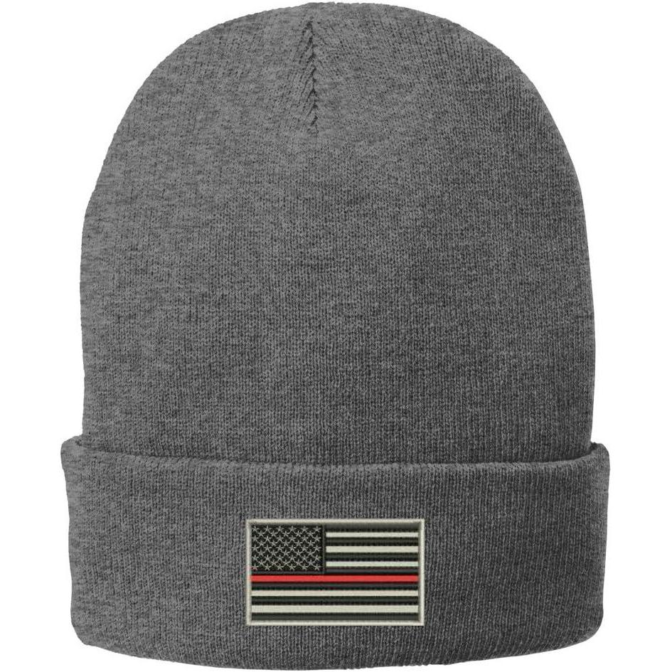 Be the first to review “Trendy Apparel Shop US American Flag Thin Red Line Fire FD Embroidered Winter Folded Long Beanie(Grey)”
