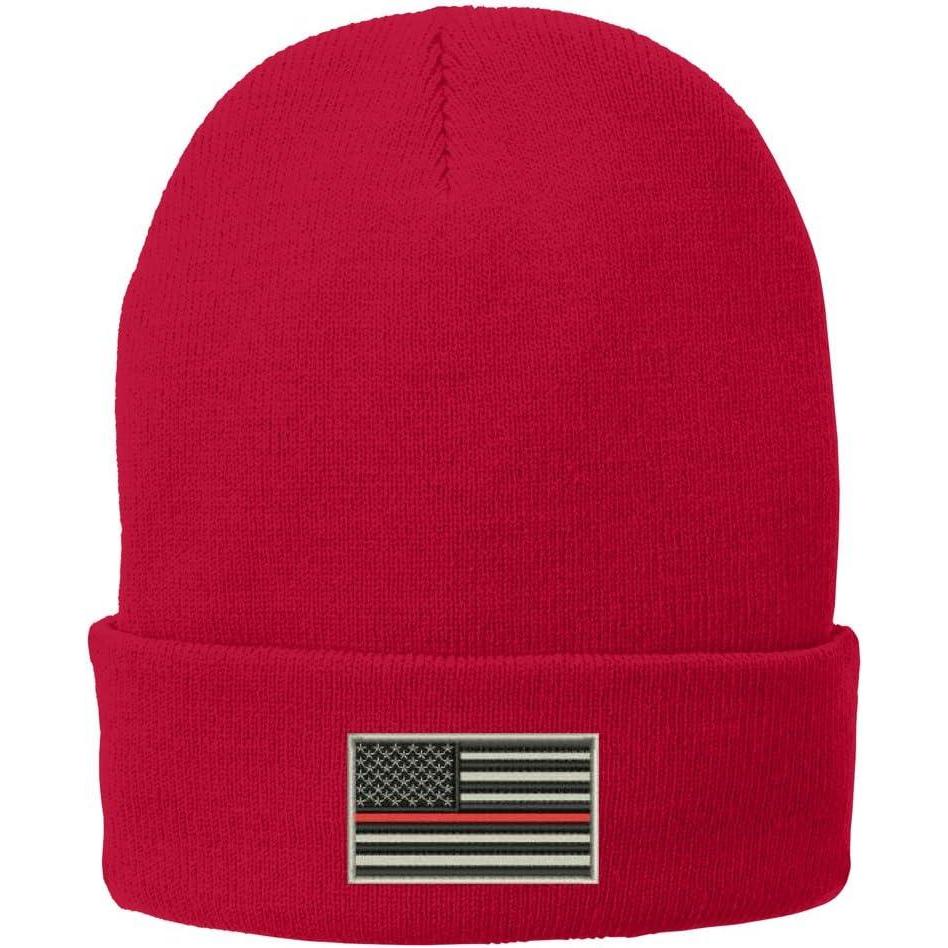 Be the first to review “Trendy Apparel Shop US American Flag Thin Red Line Fire FD Embroidered Winter Folded Long Beanie(Red)”