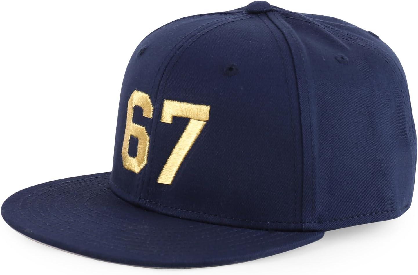 Trendy Apparel Shop Youth Size Number 67 Gold Thread Embroidered 6 Panel Cotton Snapback Cap(Navy)