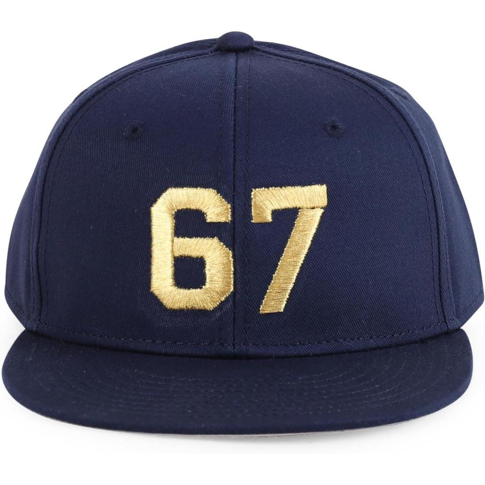 imageTrendy Apparel Shop Youth Size Number 67 Gold Thread Embroidered 6 Panel Cotton Snapback CapNavy