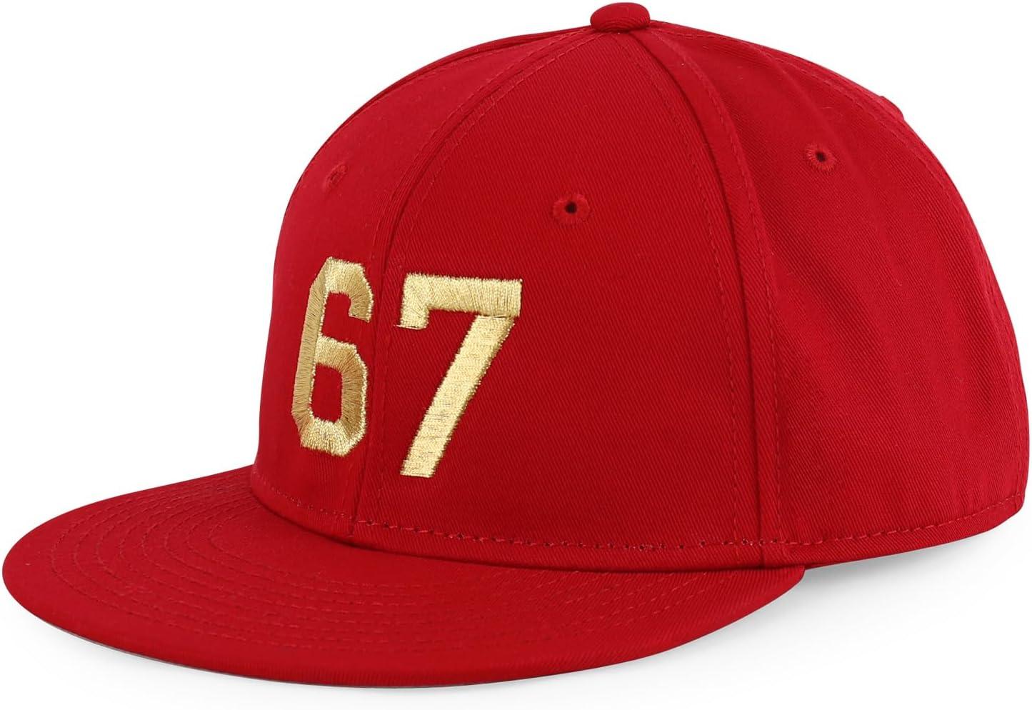 Trendy Apparel Shop Youth Size Number 67 Gold Thread Embroidered 6 Panel Cotton Snapback Cap(Red)